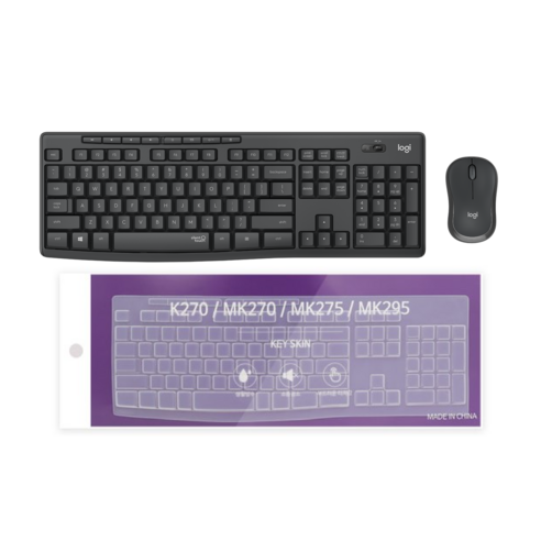 [전용키스킨증정] 로지텍 정품 MK295 Silent 무소음 무선 키보드마우스세트, 블랙 + 키스킨